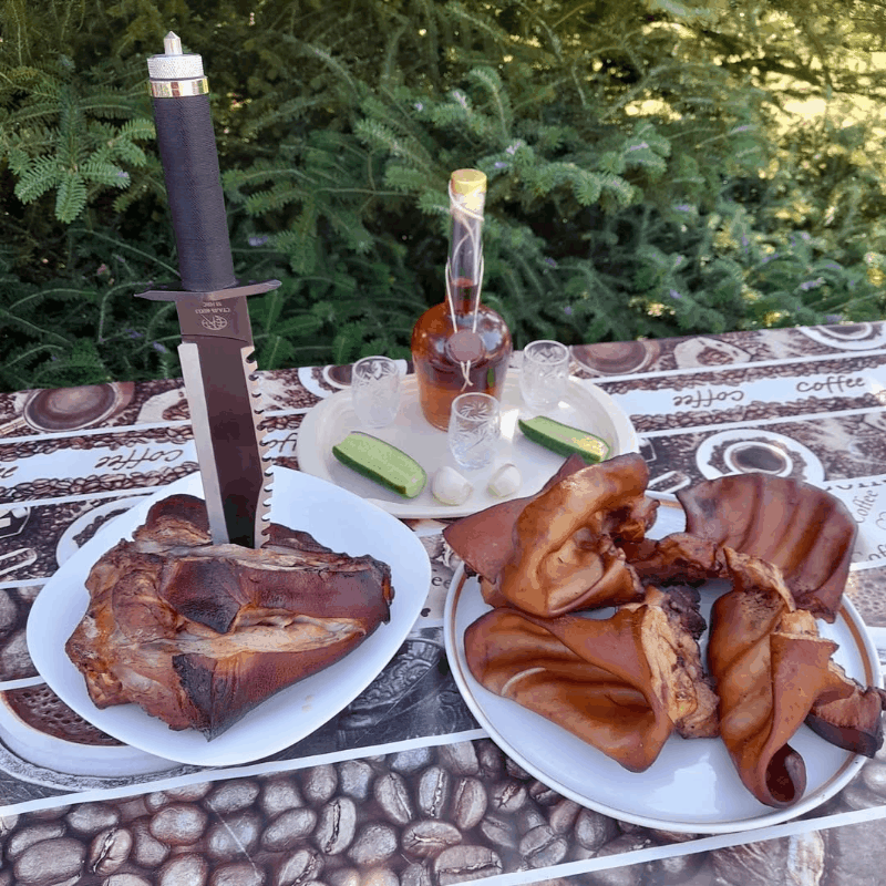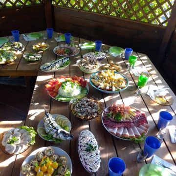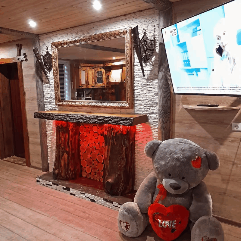 Также — своя кухня, меню. Большой набор различной посуды, столовые приборы. Музыка, TV, караоке. Волейбольное поле. Теннис. Игра в дартс. Бадминтон. Нарды.