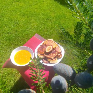 Вместительная беседка. Парилка топится только на берёзовых дровах. В распоряжении три вида веников, дуб, берёза, липа. Банные принадлежности в наличии, шапки, полотенце, сланцы. Душевая.